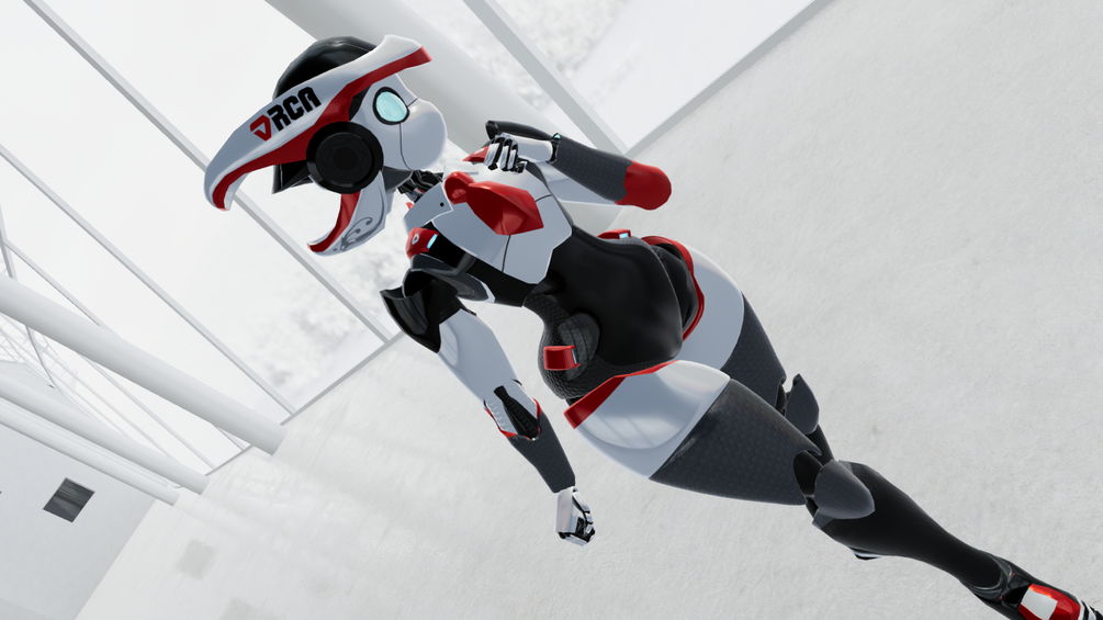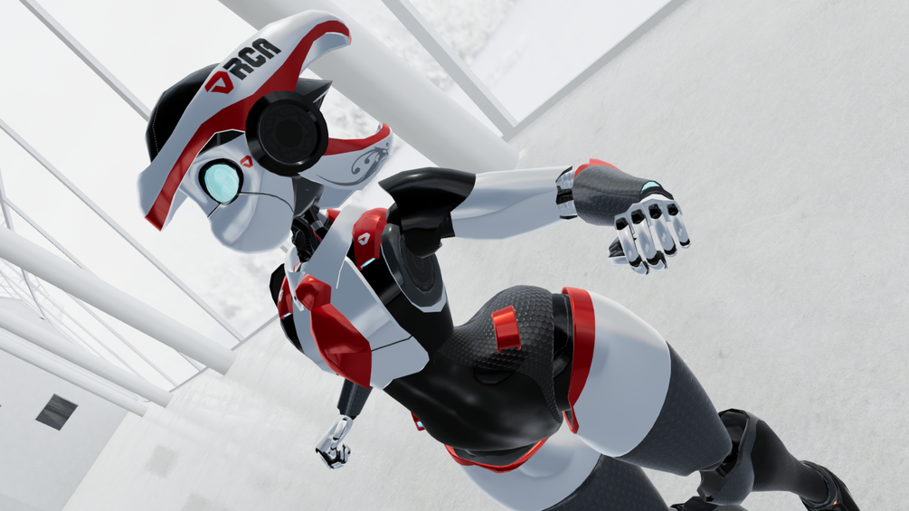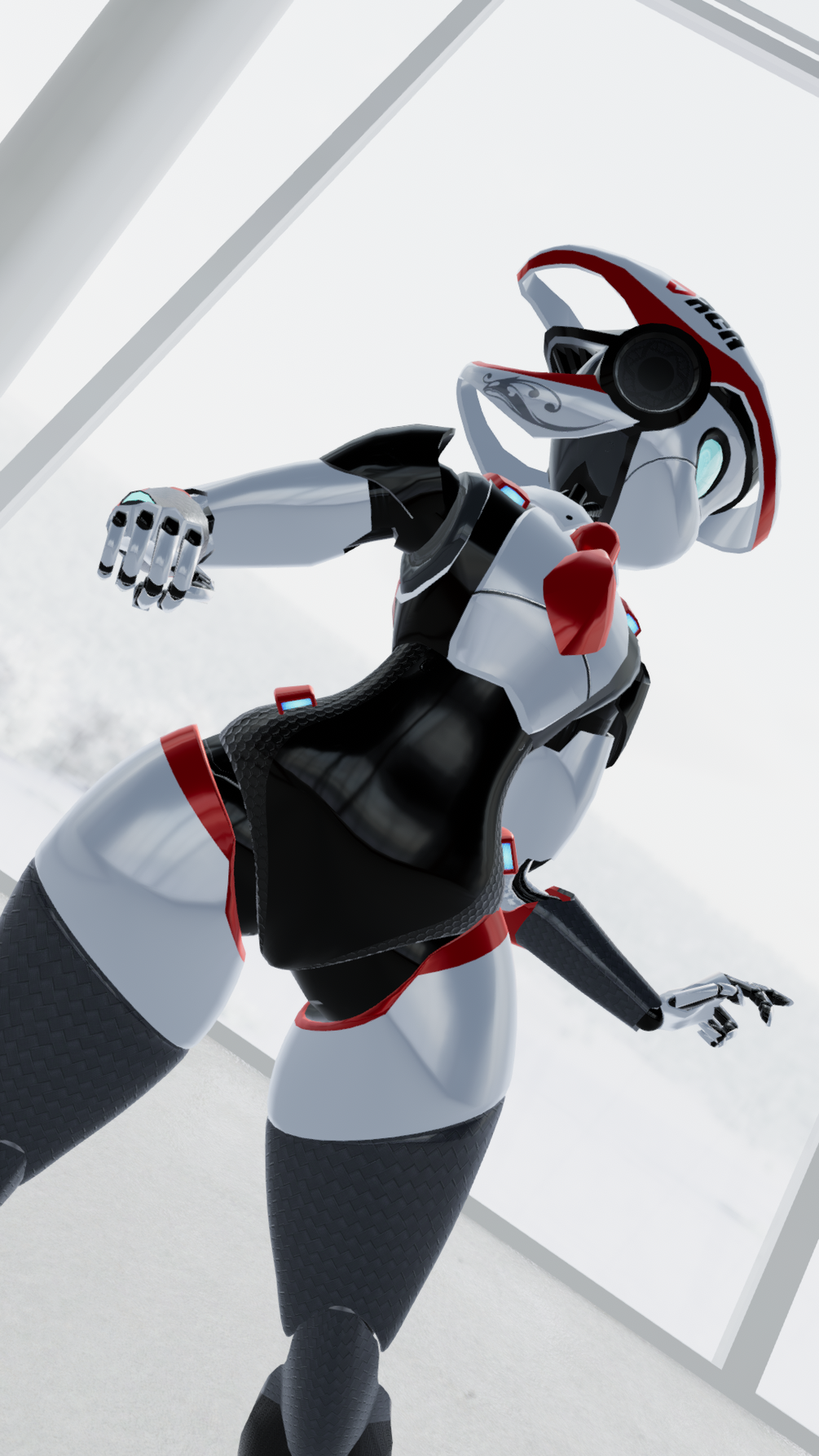 'Kalia' robot avatar for VRChat, full body compatible, Full Unity package, ▲ 27,210 , Includes body shape slider, animated power core recharger and interactive pysbones in halo.